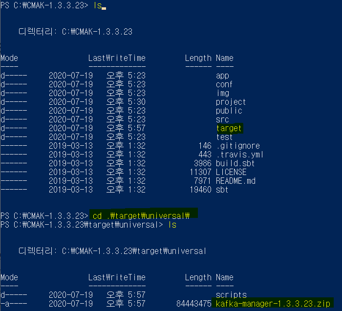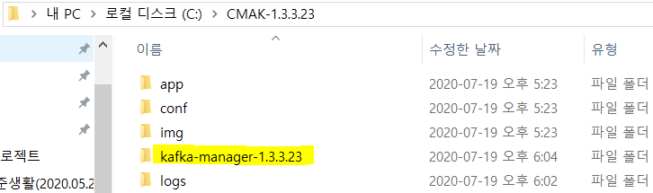 이때, 해당 디렉토리는 너무 깊어 나중에 불편할 수 있으므로, CMAK-1.3.3.23 디렉토리에 풀어주겠다.