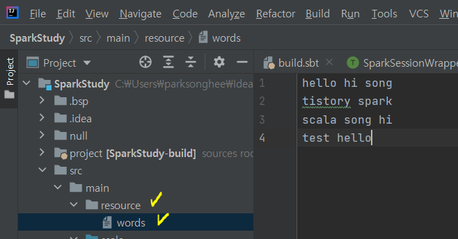 val textFile = spark.read.textFile("src/main/resources/words.txt")