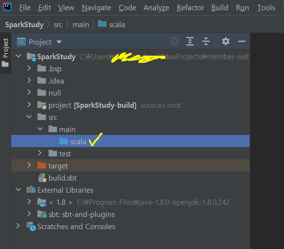 *Scala Class가 보이지 않는 경우는 아래 방법을 참고한다.
