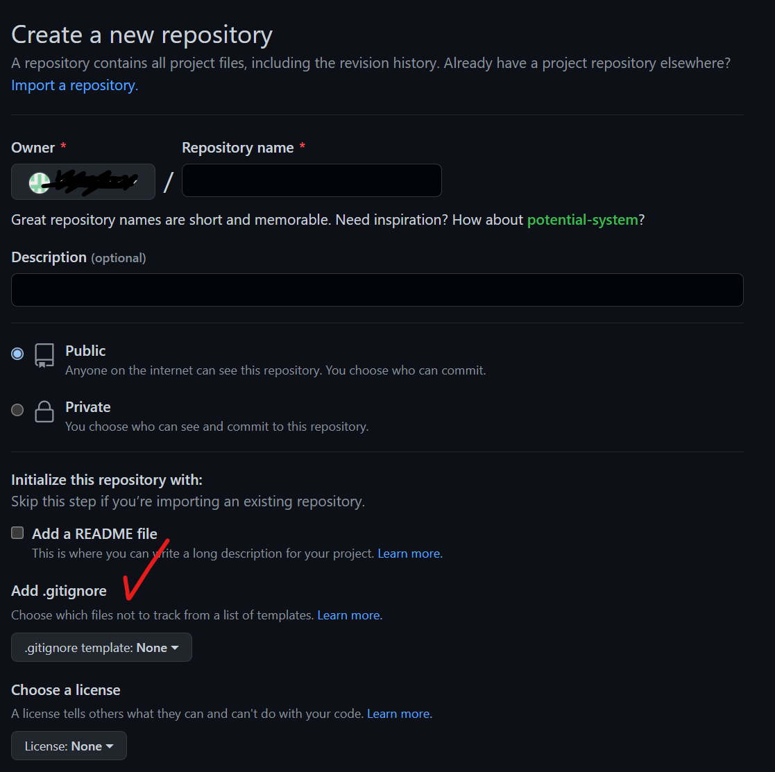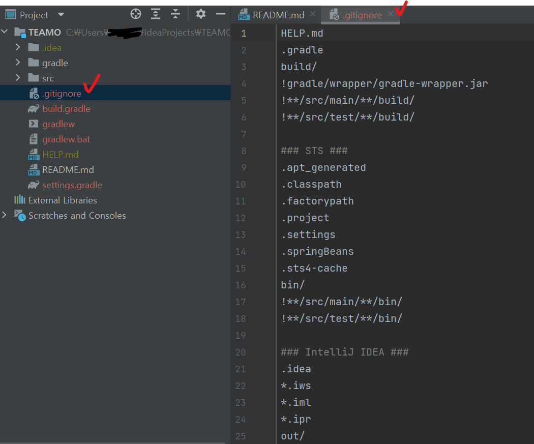 .gitignore 파일은 git에서 repository를 생성하면서 추가할 수 있다.