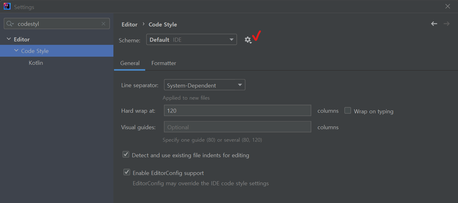 File>settings 에서 codestyle로 들어가보자.