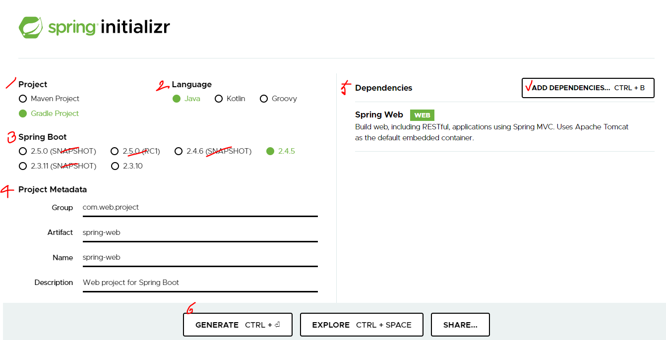 공식 가이드는 여기 있다. spring.io/quickstart Spring Quickstart GuideYou will build a classic “Hello World!” endpoint which any browser can connect to. You can even tell it your name, and it will respond in a more friendly way.spring.io SpringBoot 프로젝트를 생성하는데 뭐가 뭔지 잘 모르겠다~싶으면이 글을 따라서 해보자~ 1. 프로젝트 생성 링크start.spring.io/위 링크로 가서 프로젝트를 생성해본다. 2. 프로젝트 생성SpringBoot 프로젝트를 생성하는데 뭐가 뭔지 잘 모르겠다~싶으면 이 글을 따라서 해보자~ o..